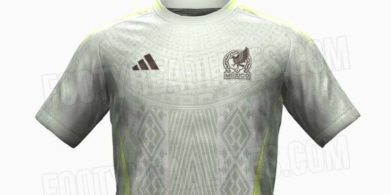 Footy Headlines, un sitio especializado en uniformes, filtró la playera que apunta a ser el jersey de visita del Tri para el 2024. La camisa tiene una base verde-gris claro, combinada con las tres rayas, ya conocidas de Adidas, en color amarillo.